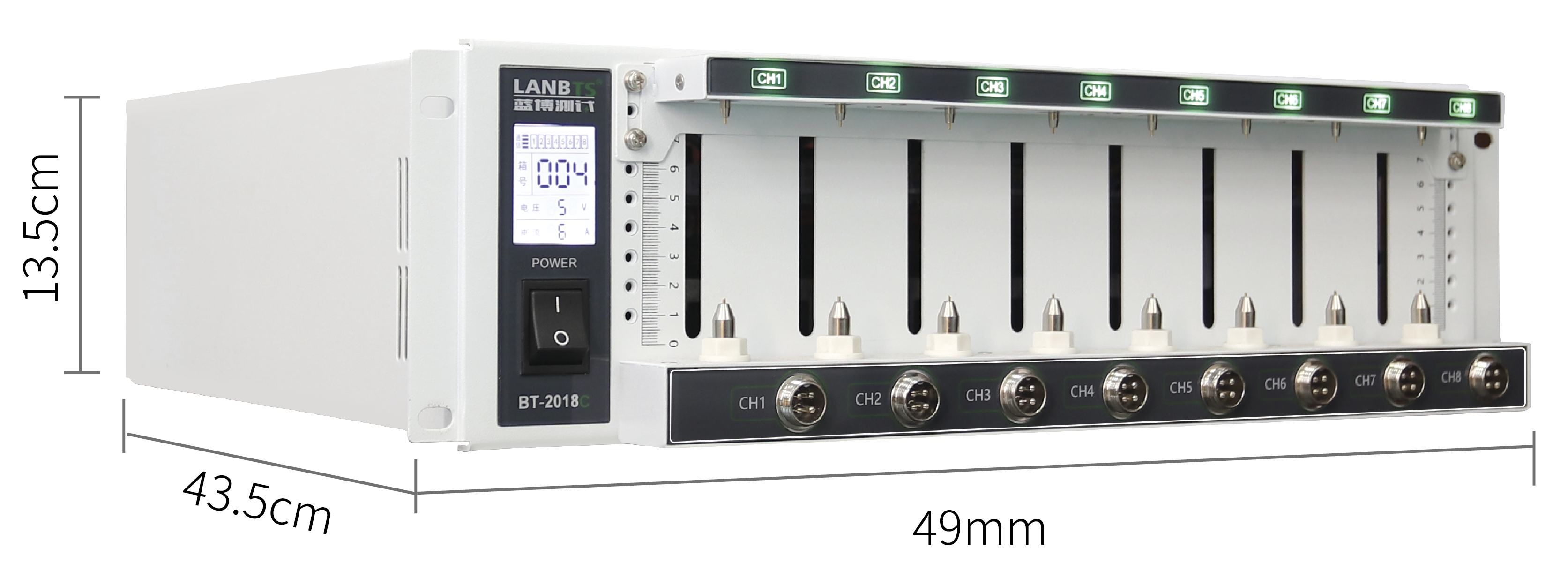 8通道/臺,可獨(dú)立編程,互不干擾;10臺/機(jī)柜,可選快拆托盤 |