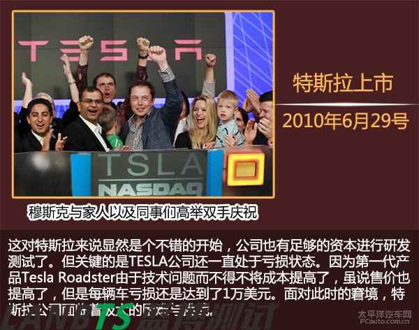 可以說,這三筆錢把Tesla從懸崖邊拉了回來。在熬過這段艱難的時光后,Tesla的資金情況逐漸好轉(zhuǎn)。2010年特斯拉在納斯達克上市,融資額達2.26億美元。開盤當(dāng)日,穆斯克也在帳面上力挽狂瀾地賺了6億3千萬美元。而上市之后,特斯拉股價在一周之內(nèi)飆升40%,市值一度超過100億美元,將老牌汽車公司菲亞特、三菱甩在身后。